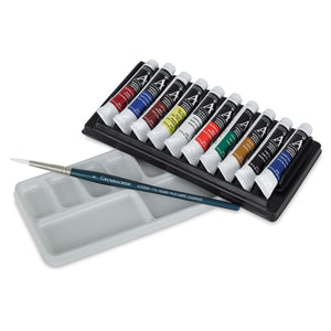 10-Tube Watercolor Set — New to watercolor? Get off to a great start with this set, which includes 10,7.5 ml tubes (Alizarin Crimson, Burnt Sienna, Cadmium Yellow Pale Hue, Chinese White, Cobalt Blue Hue, Grumbacher Red, Ivory Black, Thalo Green Blue Shade, Ultramarine Blue, and Yellow Ochre Hue), plus a camel hair brush, plastic mixing tray, and watercolor guide.