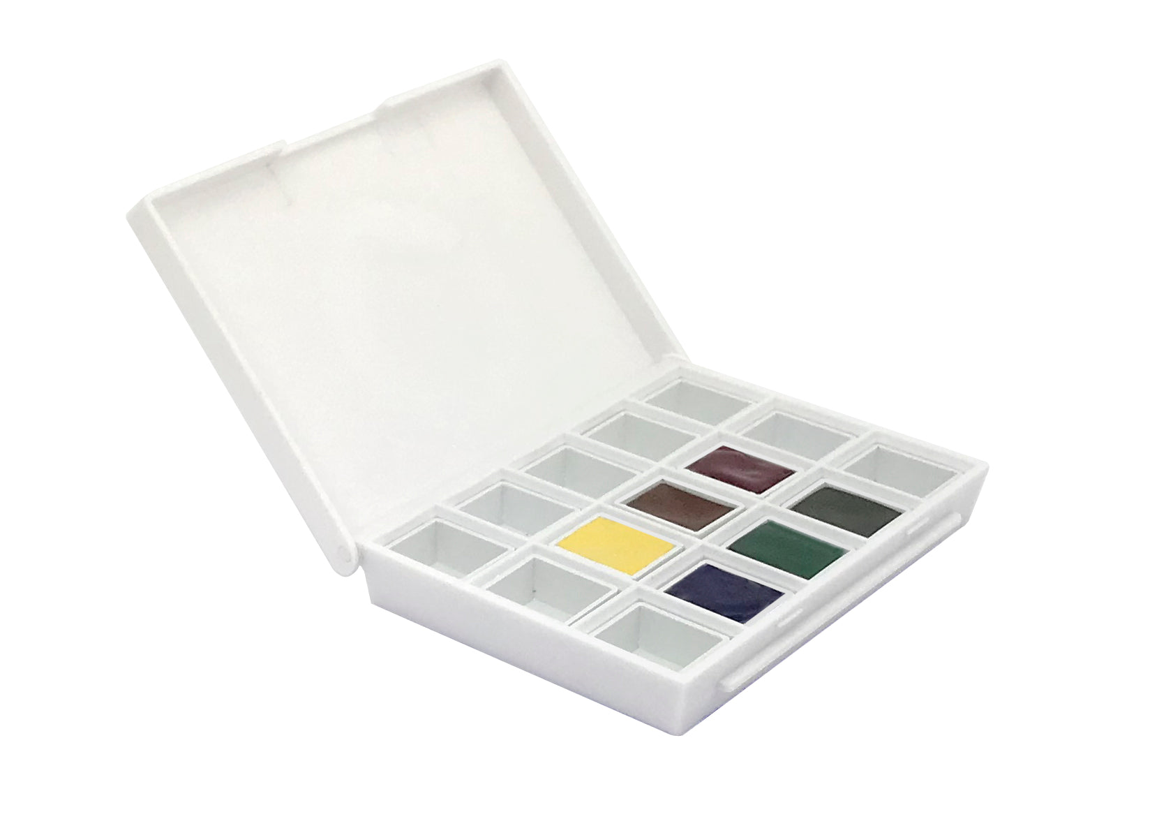 Hand Poured Watercolor Half Pan Set of 6 colors with BONUS travel case and 9 empty pans. Total quantity: 16 pcs.