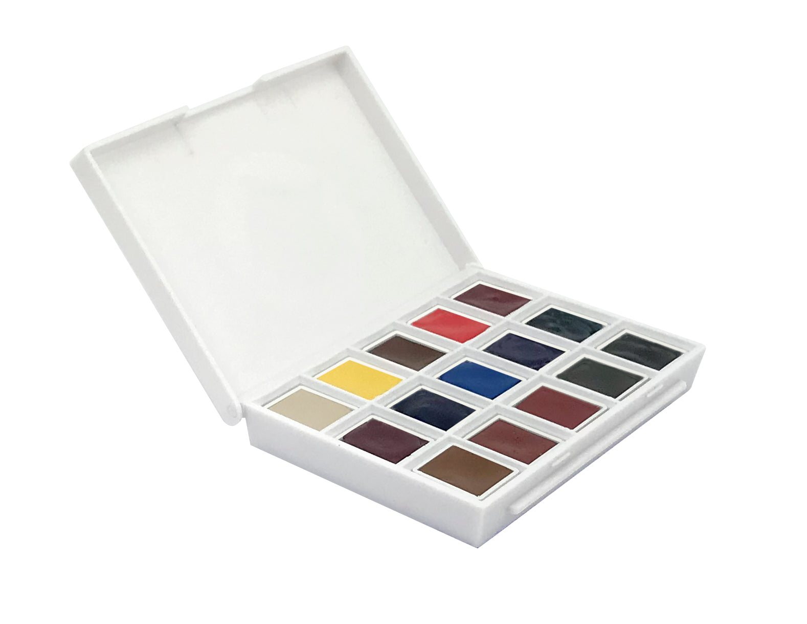 Hand Poured Watercolor Half Pan Set of 15 colors with 2 BONUS travel cases and 15 empty pans. Total quantity: 16 pcs.