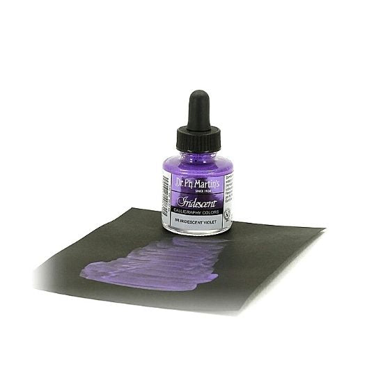Dr. Ph. Martin's Iridescent Calligraphy Colors are shimmering, highly reflective colors that are lightfast, waterproof, archival, and permanent. Made from the finest ground pigments, the unmatched color intensity of Dr. Ph. Martin's Iridescent Calligraphy Colors gives you the ability to cover dark surfaces with a dynamic range of metallic color. Great for use on paper, wood, board, metal, and some plastics. Dr. Ph. Martin's Iridescent Calligraphy Colors dries smooth and even every time. No start and stop marks. Great for use with pens (both calligraphy and dip pens), airbrushes, and brushes. Designed specially for calligraphy, to accent watercolor work, or anywhere where you need to add a magical shine and shimmer that only pigment-based iridescent color can provide.