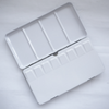 This watercolor tin can accommodate 24 half pans or 12 full pans.