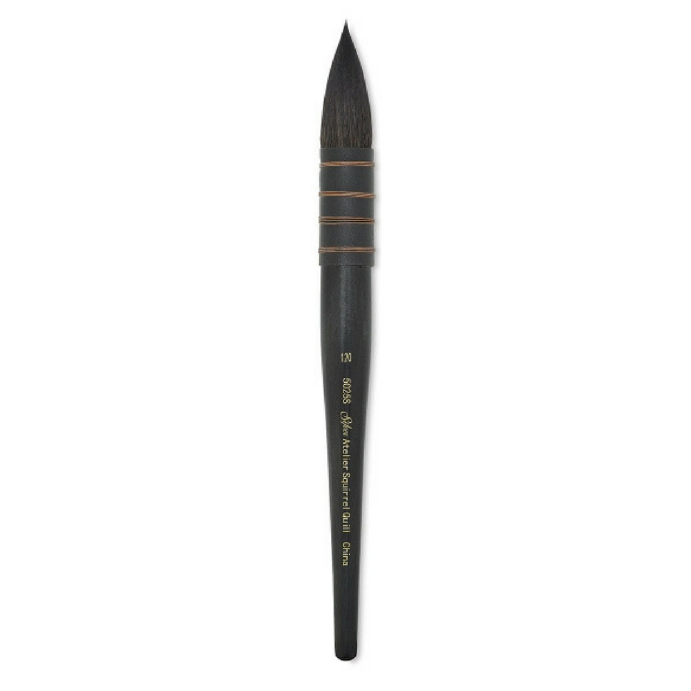 From the Silver Brush Atelier line of brushes comes the Quill Series Squirrel hair brush. Perfect for use with watercolor paints, their silky smooth black squirrel hair holds maximum amounts of color or water.