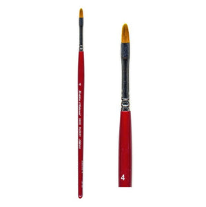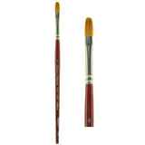 A unique blend of natural hair and tapered Golden Taklon filaments creates superb, versatile acrylic and oil brushes with extraordinary spring and good color holding capacity. Hair is precisely blended, skillfully cupped, and carefully set in nickel brass ferrules. Hardwood handles are lacquered in a beautiful red wine stain with a distinctive silver tip.